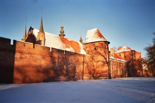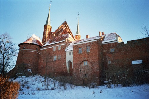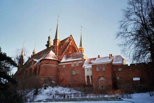 Inkastelowany zespół katedralny - bazylika archikatedralna Wniebowzięcia NMP i św. Andrzeja Apostoła we Fromborku została zbudowana w latach 1329-1388. Powstała na ufortyfikowanym wzgórzu, w miejscu dawnej drewnianej świątyni, pełniącej wcześniej rolę katedry. W sąsiedztwie znajduje się dawna rezydencja biskupia i kanonie. Budowa całego kompleksu trwała prawie nieprzerwanie do początku XVII w. Wielokrotnie odbudowywany,, szczególnie po zniszczeniach dokonanych przez Szwedów w czasie potopu oraz w czasie II wojny światowej. We Fromborku przebywał Mikołaj Kopernik, który jako kanonik kapituły warmińskiej żył i pracował na Wzgórzu Katedralnym niemal nieprzerwanie od roku 1510 do dnia swojej śmierci w maju 1543 roku.