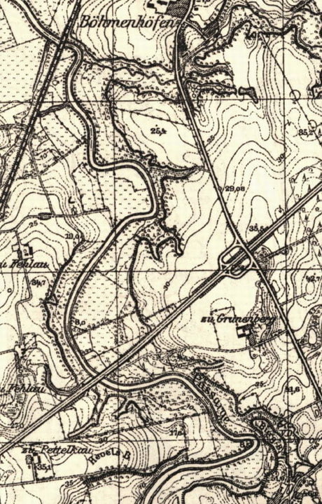 fragment mapy z okolicy wsi Bemowizna (Boehmenhofen) oraz dawnego folwarku Grunenberg