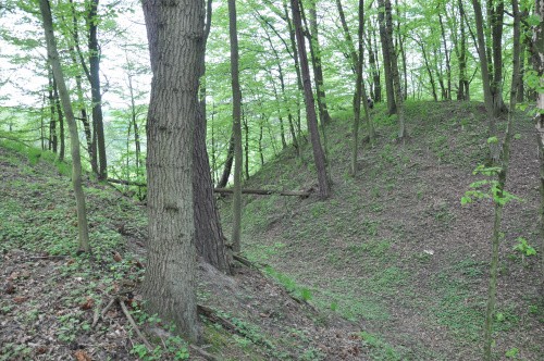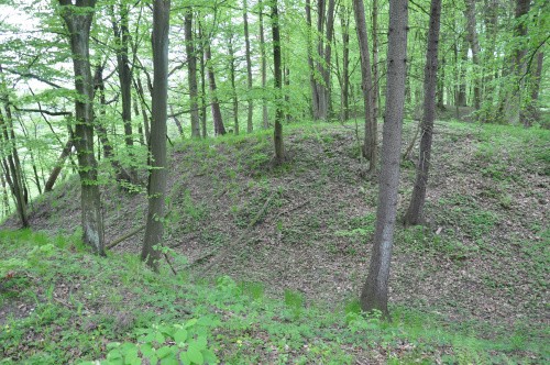 | Coś mi tu nie daje spokoju, Kajzer pisze o zachodnim brzegu rzeki, natomiast na powyższych mapkach obiekt jest po lewej stronie, dodatkowa informacja, że zamek był z trzech stron otoczony skarpami, gdzieś jest błąd.... |