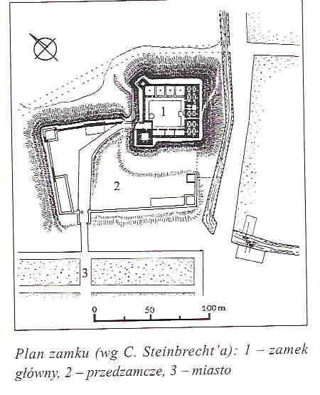 plan zamku w XIV wieku wg M.Milewskiej 1990 (źr.Leksykon Zamków..., str.166)