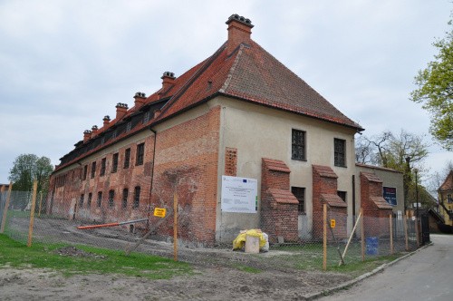 Na zdjęciach browar zamkowy wraz z zachowanym murem przedzamcza