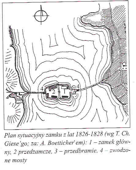 Miasto i zamek w 1684 roku wg Ch.Hartknocha (źr.Zamki Krzyżackie w Polsce,M.Haftka,str.86)