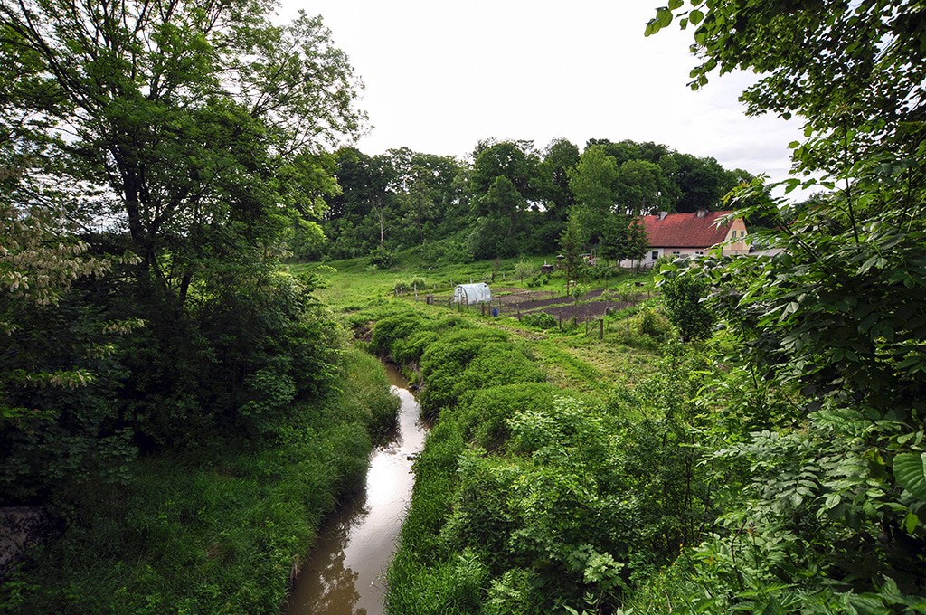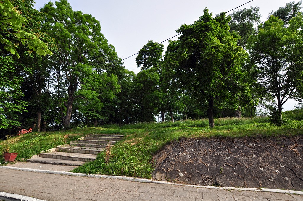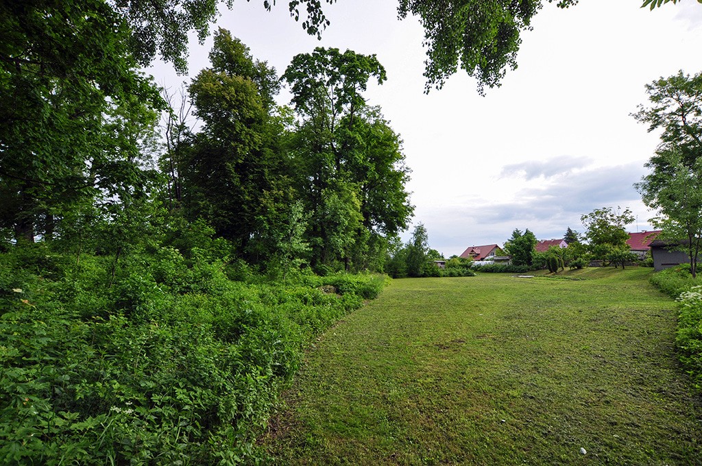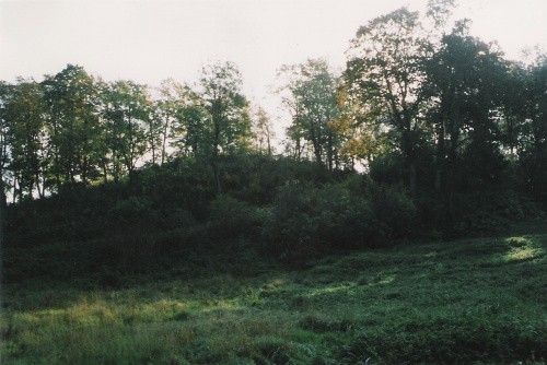 wzgórze ma którym wzniesiono zamek oraz fragment dawnego przekopu na wzgórzu (fosy???)