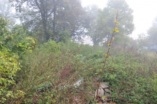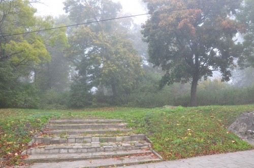 istniejące piwniczki postawione na fundamentach zamkowych po części już zburzone i pozarastane, część terenu odgrodzona