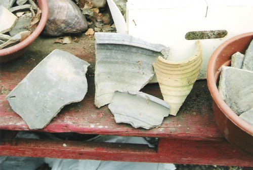 w chwili obecnej relikty zamku (wieży obronnej) są niestety już zasypane. Na zdjęciach poniżej teren gdzie obiekt się znajdował, polepa widoczna w miejscu badań, fragmenty średniowiecznej ceramiki znalezionej na polu.