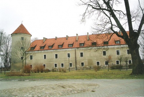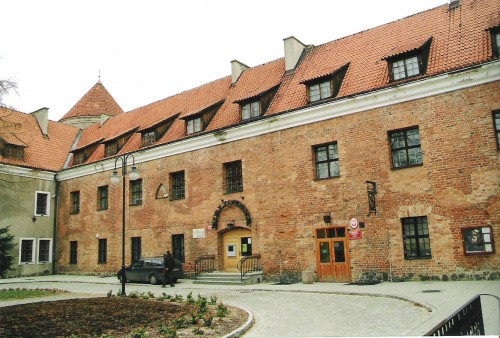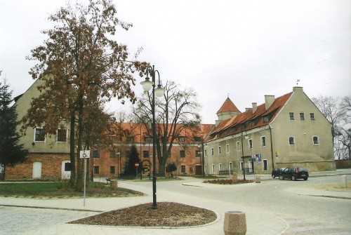 Zamek krzyżacki w Pasłęku - zamek murowany został wybudowany przez Krzyżaków w XIV w. na miejscu wcześniejszych budowli obronnych. Ze względu na atrakcyjne położenie obiektu (wysokie i strome wzniesienie dostępne jedynie od strony miasta, otoczone murami) już wcześniej znajdowały się tam fortalicje i umocnienia budowane zarówno przez rdzenną ludność pruską, jak i przez zakon krzyżacki. Zgodnie z regułami budownictwa krzyżackiego obiekt był równocześnie zintegrowany z miastem i wyraźnie od niego oddzielony, tj. znajdował się w obrębie murów miejskich, jednak obszar zamkowy odgradzały od zabudowań miejskich dodatkowe umocnienia i fosa. Początkowo obiekt był jednoskrzydłowy i dwuwieżowy oraz mieścił siedzibę prokuratora krzyżackiego podległego komturii elbląskiej. W 1454 zamek w Elblągu padł łupem zbuntowanych mieszczan i komtur tego miasta przeniósł się do Pasłęka. Wtedy zostało dobudowane jeszcze drugie skrzydło zamku. Postanowieniem II pokoju toruńskiego Pasłęk miał trafić w granice Polski, został jednak razem z Pasymiem wymieniony za Sztum. Zamek pozostał zatem siedzibą komtura i był nią aż do kolejnego powstania mieszczańskiego w 1521, kiedy Krzyżacy zostali wygnani, a zamek poważnie uszkodzony. W 1543 wielki pożar miasta nie oszczędził również i tego obiektu, z które zostały tylko ściany. Odbudowana nadała zamkowi oblicze znane nam do dzisiaj. Dobudowano dwa skrzydła, tworząc zamknięty czworobok, zaś wieżom nadano nowy, bardziej zgodny z duchem renesansu kształt okrągły. Dalsze fundowane przez elektora brandenburskiego przebudowy - z 1559 , 1586 i I poł. XVII wieku - miały na celu adaptację średniowiecznego zamku na potrzeby nowej sztuki wojennej. Okazały się na tyle skuteczne, że w 1659 r. obiekt wytrzymał szwedzkie oblężenie. Trzy lata wcześniej w zamku spotkali się Karol X Gustaw i Fryderyk Wilhelm elektor Brandenburgii, uzgadniając plany dalszej polityki wobec Polski. Mimo tego w XVIII stuleciu obiekt uznano za niezdatny do dalszego wykorzystywania wojskowego, zamieniając go na tymczasowe koszary i magazyny. W wieku XIX (do 1925) mieścił więzienie, zaś do II wojny światowej - sąd. Rok 1945 okazał się tragiczny dla zamku, który - podobnie jak pobliski ratusz i większość miejskiej zabudowy - spłonął na skutek działalności Armii Radzieckiego, dla której wszelkie zabytki w Prusach Wschodnich były przejawami znienawidzonej niemieckości. W latach 50. i 60. XX wieku nastąpiła odbudowa zamku na cele administracyjno - kulturalne. Obecnie mieści on siedzibę Rady Miejskiej, bibliotekę, Izbę Historyczną, kino oraz świetlicę dla dzieci. Obiekt został otynkowany (poza centralnym skrzydłem), zdecydowano się również na odbudowę trzech z oryginalnych czterech skrzydeł zamku, nie zamykając tym samym dziedzińca. W wyniku ostatniej odbudowy zamek w niewielkim stopniu przypomina pierwotną krzyżacką warownię, czy chociaż zamek po odbudowie w XVI w. Pewne elementy pierwotnej architektury zawiera jedynie nieotynkowane najstarsze i najmniej zniszczone na przestrzeni dziejów skrzydło północne, które zachowało pozostałości po otworach strzelniczych (zamurowane) oraz ślad zamkowej furty. Cały obiekt jest trójkondygnacyjny, baszty o jedno piętro wyższe, z dachem stożkowym. Także układ wnętrz, wielokrotnie modyfikowany, dziś zachowuje oryginalne cechy jedynie na poziomie piwnic oraz w jednym, zrekonstrowanym pomieszczeniu administrowanym przez Urząd Miasta, gdzie odtworzono sklepienie krzyżowe oraz gotyckie filary.