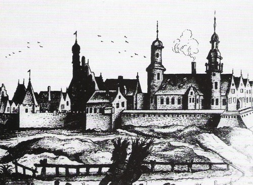 widok miasta i zamku w XVII wieku na rysunku A.Boota