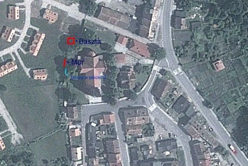 Czy mógłbyś narysować jakię ręczny planik i wrzucić go tutaj z rozmieszczeniem: kościoła, fundamentów baszty (??) i tego arcyciekawego, zarastającego murku?