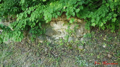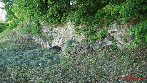 Na samej krawędzi tego nasypu zachował się niewielki fragment muru. A w nim...