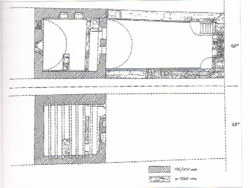 rzut reliktów najstarszej zabudowy murowanej odkrytej na posesji przy Rynek 48