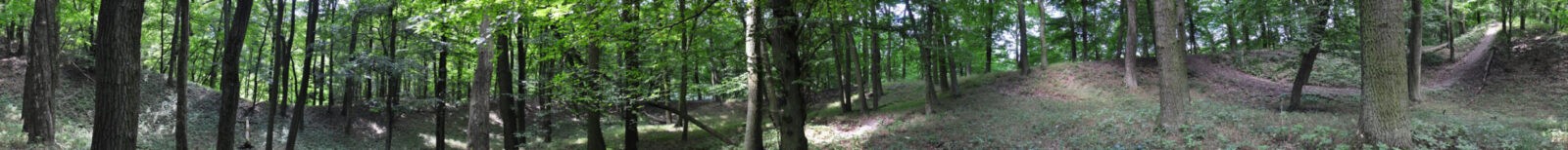2 panoramy grodziska. Z zewnątrz i majdan. Wykonane w jakiś letni wieczór.