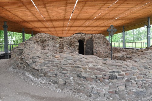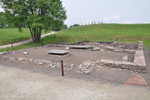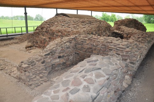 W IX w. powstało kamienne „umocnienie”? pierwotnego wyniesienia wyspy, które odsłonięto na długości 30 metrów.