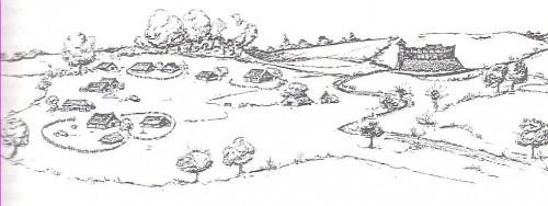 rekonstrukcja grodu i plemiennego zespołu osadniczego w Bruszczewie wg. S.Jasnocha z poprawkami M.Brzostowicza