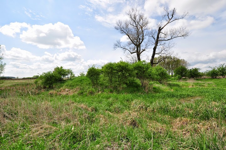 Nienajlepiej zachowany stożek. Leży w całkiem sympatycznym bagnie, wokół pełno dzikiego ptactwa. Przez fosę da się wejść na obiekt od dwóch stron dzięki groblom, z czego jedna całkiem współczesna.