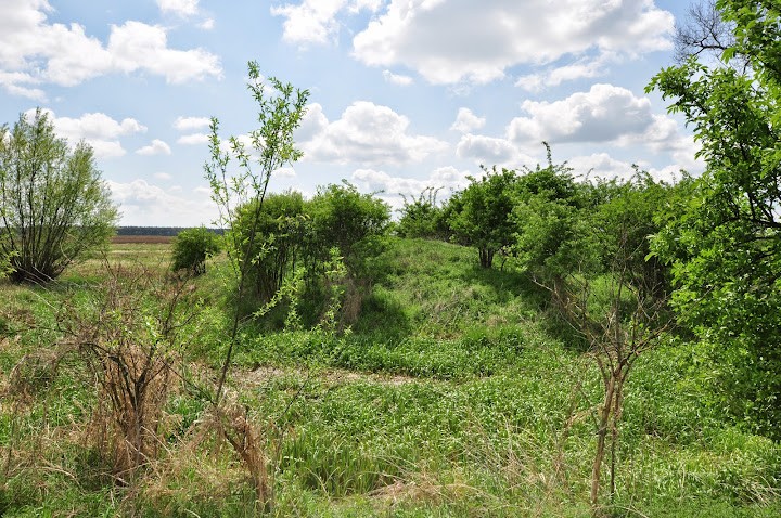 Na majdanie grodziska wywróciło się drzewo odsłaniające albo materiał ceglany albo duża ilość polepy. Rozgrzebywać nie chciałem, może się kiedyś tym jakiś archeolog zajmię.