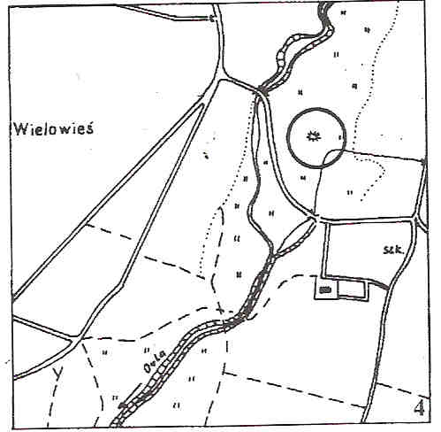 W Wielowsi znajduje się późnośredniowieczne grodzisko o dwufazowym czasie użytkowania. Kopiec wznosi się wśród łąk, ma wysokość ok 1,5m i średnicę u podstawy około 20m. Dodatkowo otacza go wał o szerokości 6m. który obecnie jest zniwelowany i wystaje ponad poziom łąk na wysokość zaledwie 20cm. W XIV wieku istniał w tym miejscu drewniany dwór, a na jego miejscu wzniesiono w XVII wieku drewniany budynek na kamiennym fundamencie o szerokości 20cm. Poziom użytkowy wyłożono brukiem kamiennym. Wieś w XIII-XIV wieku należała do rodziny Ziemiętów, a w XVI i XVII wieku do Cielęckich i Rozdrażewskich.