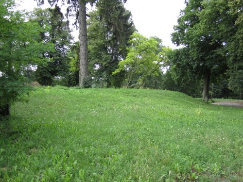Ok. 30 m na zachód od pałacu, w parku na półwyspie jeziora Zajączkowskiego znajduje się kopiec będący prawdopodobnie grodziskiem na którym według miejscowej tradycji stał dwór Grzymalitów, Nałęczów lub Zarembów (XIV-XVw.). Wysokość stożka 1-1,5m, średnica dołem 40-50m. Znaleziono na nim "ułamki naczyń obtaczanych silnie, stalowoszare skorupy oraz fragmenty kafli polewanych".