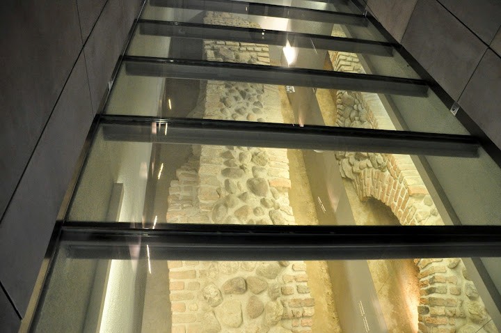 Fragmenty eksponowane, kilka metrów pod ziemią, w rezerwacie archeologicznym Genius Loci.