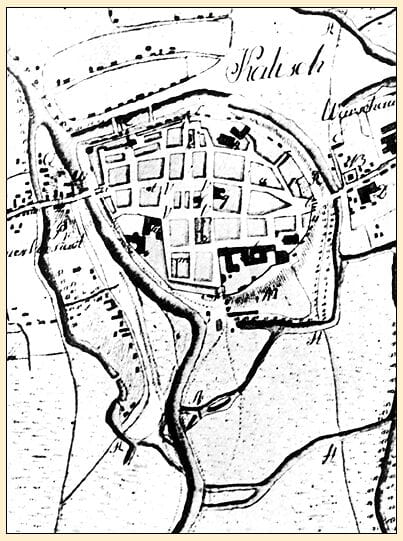 Mury miejskie w Kaliszu wzniesiono ok. 1350 r. na polecenie Kazimierza Wielkiego. Owalny układ murów ustalała Prosna i jej kanały.