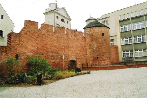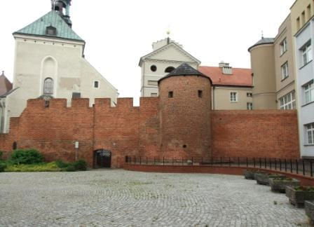 zachowane odcinki muru wraz z basztą "Dorotka"