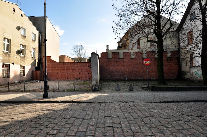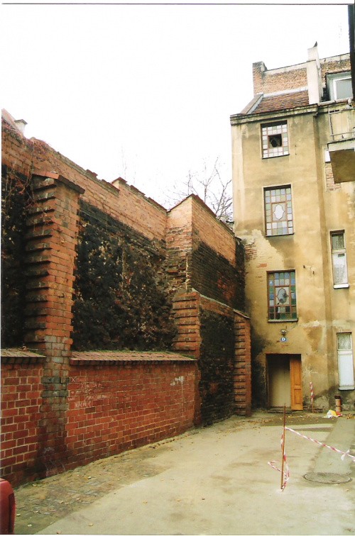 I już muru nie ma. Tzn. jest, ale styka się z tylną ścianą kamienicy i go nie widać. Podobno można go jeszcze zobaczyć od strony wewnętrznej, tj od podwórka, ale nie znalazlem na nie wejścia..![]()