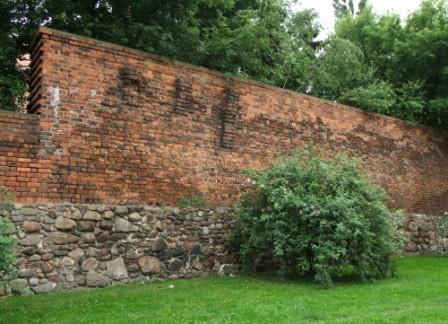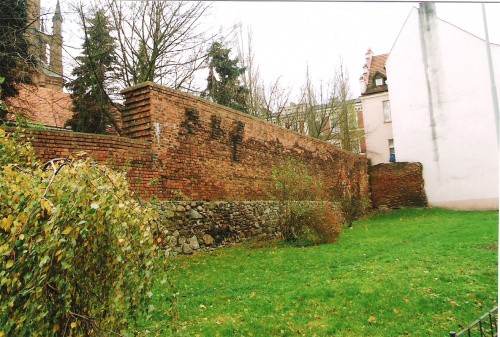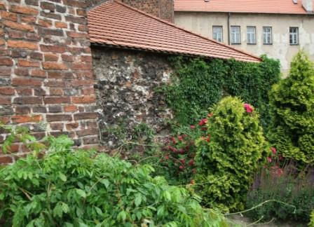 5. Ulica Kadecka. 19-metrowy odcinek muru, moim zdaniem najciekawszy, bo sięgający jeszcze XIII wieku (wendyjski układ cegieł). Wstęp na podwórko wolny (otwarta brama), rusztowania świadczą o tym, że będzie remontowany.