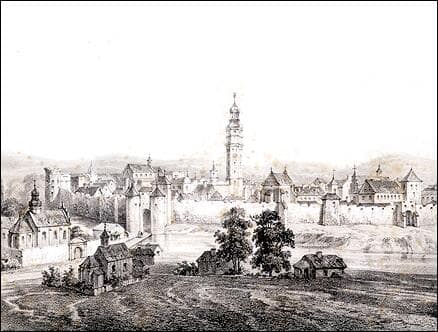 Panorama miasta na rysunku S.Barcikowskiego, Litografia z 1858 roku
