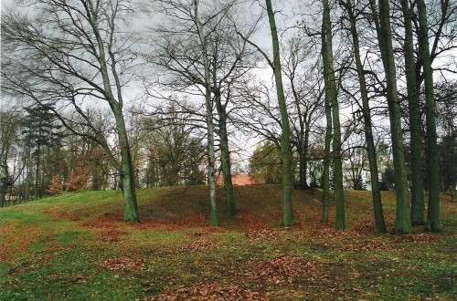 którego zachowany Jest podłóżny staw będący pozostałością po fosie. Założono pięć wykopów