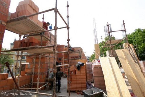 Na Górze Przemysła pracuje około 80 budowlańców. Muszą się spieszyć, bo zamek - nadbudowywany na pozostałościach murów z XIV-XV w. - ma być gotowy w 2013 r. W nowych wnętrzach znajdą się sale Muzeum Sztuk Użytkowych