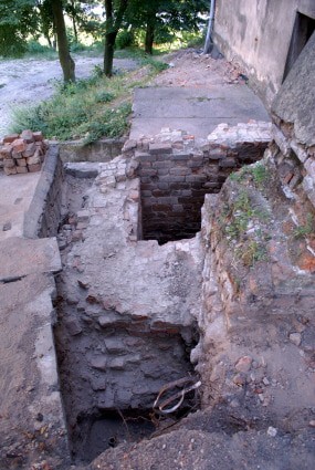 miejsce od drugiej strony budynków gdzie, na widocznym podwórku prowadzono wykopaliska gdzie odkryto relikty zamku