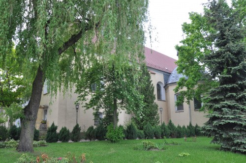 zabudowania klasztorne doczepione do kościoła powstałego z zamku