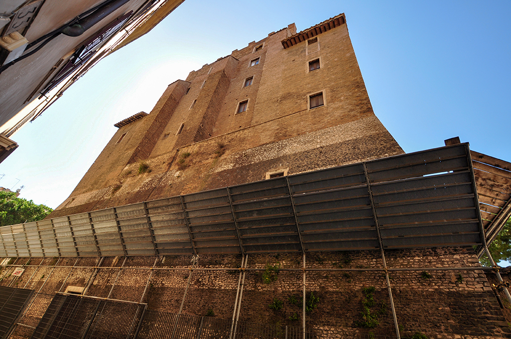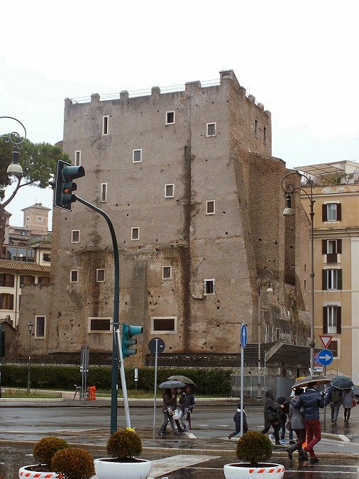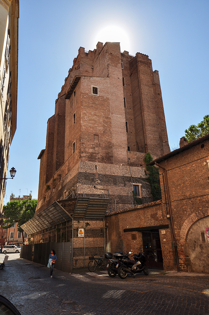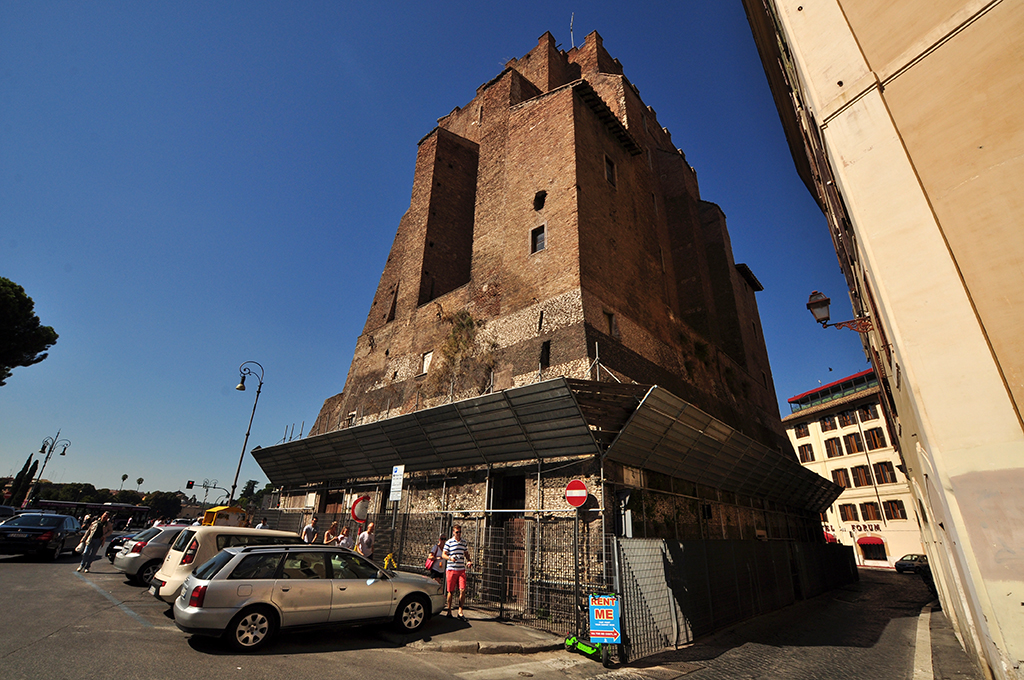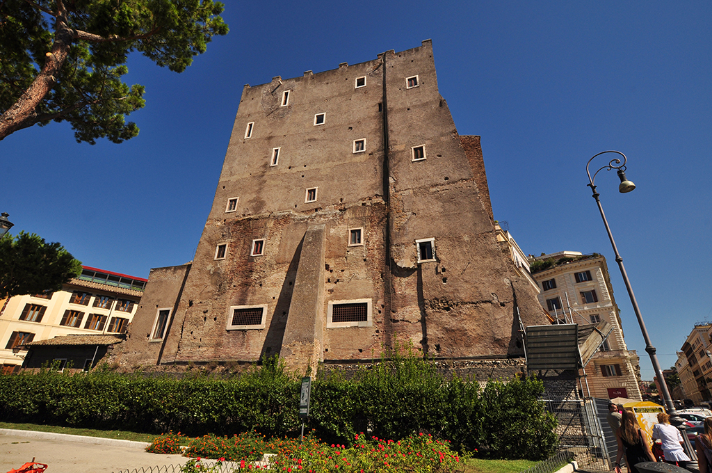 Na bazie tej masywnej eksedry w 858 r. Pietro dei Conti zbudował pierwszą wieżę mieszkalno-obronną dla swojej rodziny.