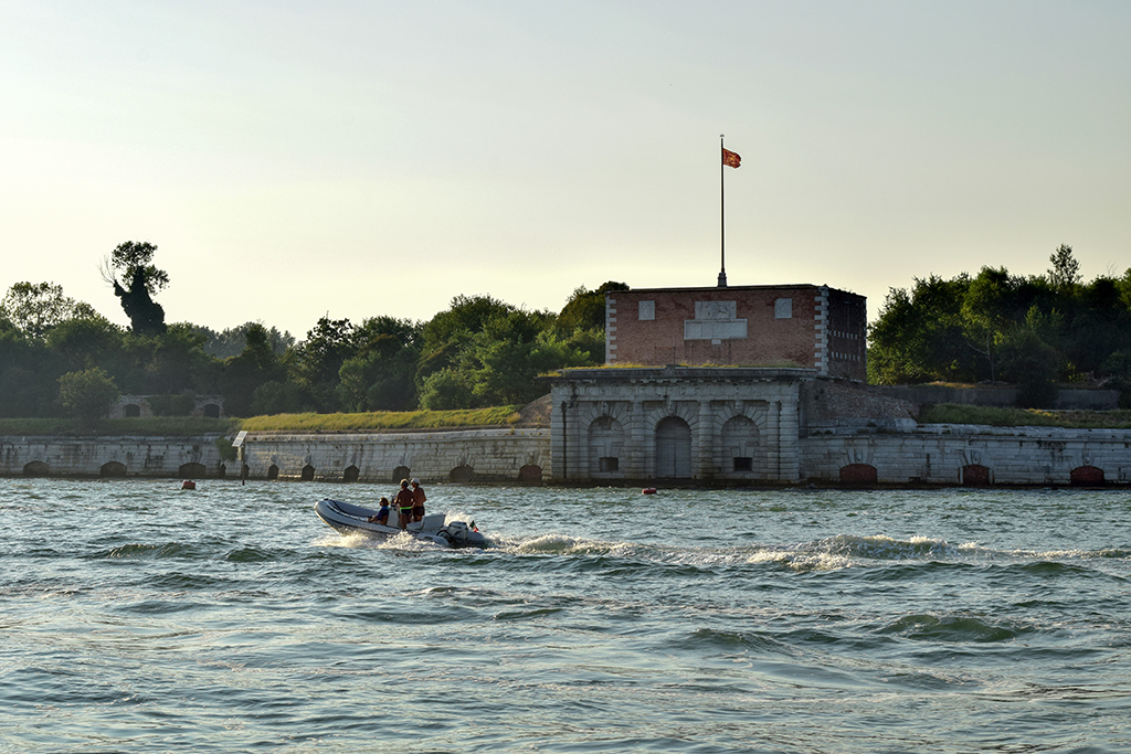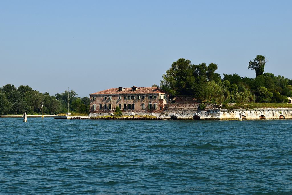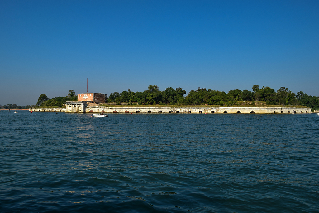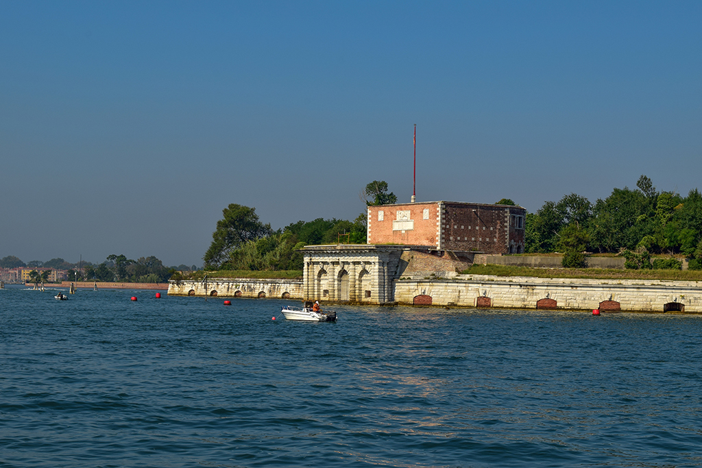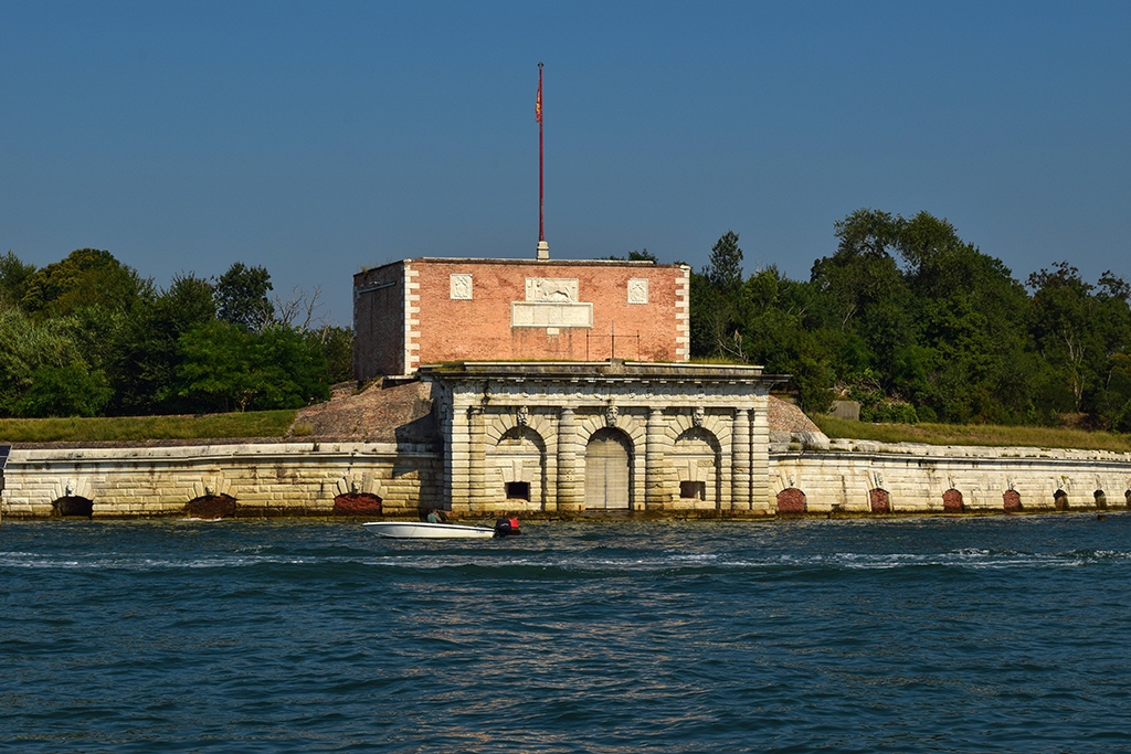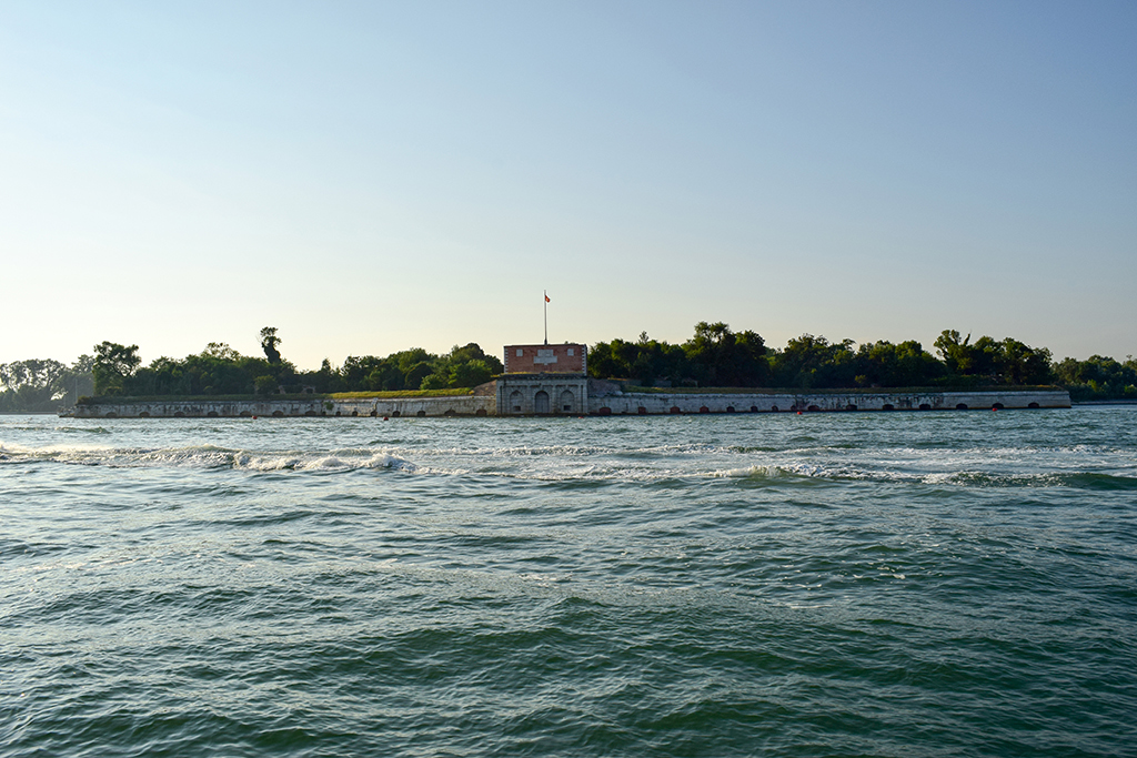 Forte di Sant' Andrea - wyspa obok Wenecji z fortem z XVI w. (system obronny laguny weneckiej). Wyspa niedostępna, znajduje się w strefie zmilitaryzowanej. Zdjęcia z tramwaju wodnego