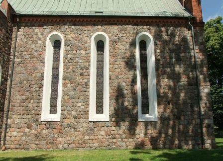 Romański, zbudowany w 2 ćw. XIII wieku z kwadr granitowych był obszerną trójnawową bazyliką z prosto zamkniętym prezbiterium i masywem zachodnim (obecnie nieistniejącym). Korpus nawowy założony na planie kwadratu, składa się z trzech naw rozdzielonych ostrołukowymi arkadami, wspartymi na czterech granitowych filarach.Część nawową od prezbiterium oddziela łuk tęczowy. W ścianach prezbiterium zachowały się po trzy romańskie okna, jednakże wtórnie znacznie przedłużone. Przy północno-wschodnim narożniku dobudowana była zakrystia, której reliktem jest tylko romański portal. Kościół oczywiście był zamknięty, więc tymczasowo tylko zdjęcia z zewnątrz. (fot. czerwiec 2013)