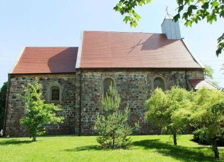 Z pierwotnego detalu zachował się zamurowany romański portal w północnej ścianie nawy oraz portal wiodący od południa do prezbiterium, a także 2 zamurowane okna w ścianie południowej nawy i 1 w południowej ścianie prezbiterium oraz 1 w północnej ścianie nawy. Jest także zamurowana i częściowo uszkodzona triada okien w ścianie wschodniej. Kościół wiązany jest z Templariuszami z Rurki i oczywiście był zamknięty. fot. czerwiec 2013)