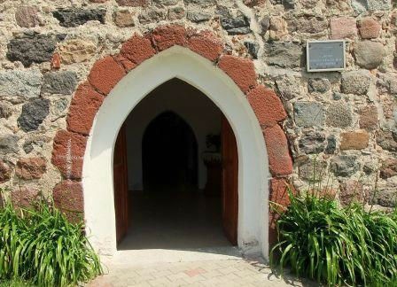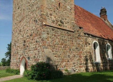 Kościół wzniesiono w 4 ćw. XIII wieku, ale czternastowieczna rozbudowa zatarła pierwotny plan. Najstarszym fragmentem jest podstawa wieży, wykonana z kwadr granitowych ułożonych w regularne warstwy. W elewacji zachodniej znajduje się ostrołukowy portal z kwadr granitowych obrobionych jedynie od strony lica. (fot. czerwiec 2013)