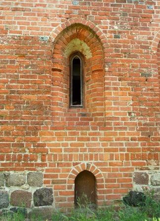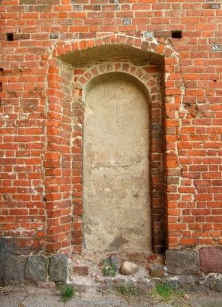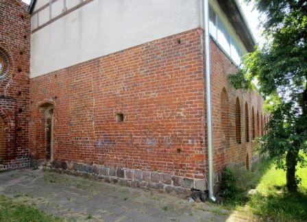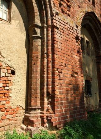 Portal w północnym ramieniu transeptu. Wyżej ślady po zamurowanych pierwotnych oknach.
