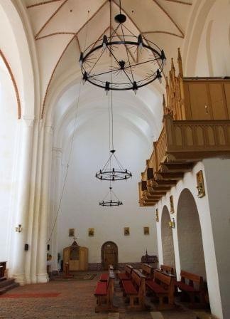 Prezbiterium. Widoczny styk murów romańskich i gotyckich.