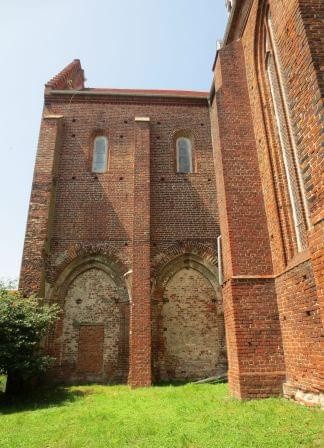Południowe ramię transeptu z zamurowanymi arkadami do kaplic.
