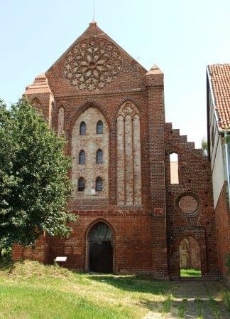 Pochodzi z połowy XIV wieku i został zbudowany z cegły w układzie wendyjskim. Posiada dwie kondygnacje i piwnicę. Część zachodnia została przekształcona – dawny portal gotycki, został przebudowany na okna, a główne wejście znajduję się od strony północnej.