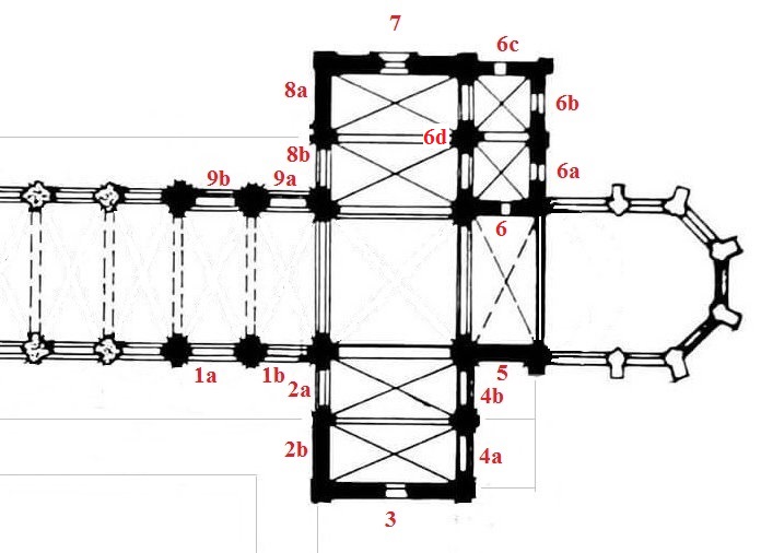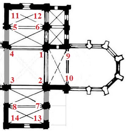 11-14 Prostokątne służki sklepień w narożach transeptu