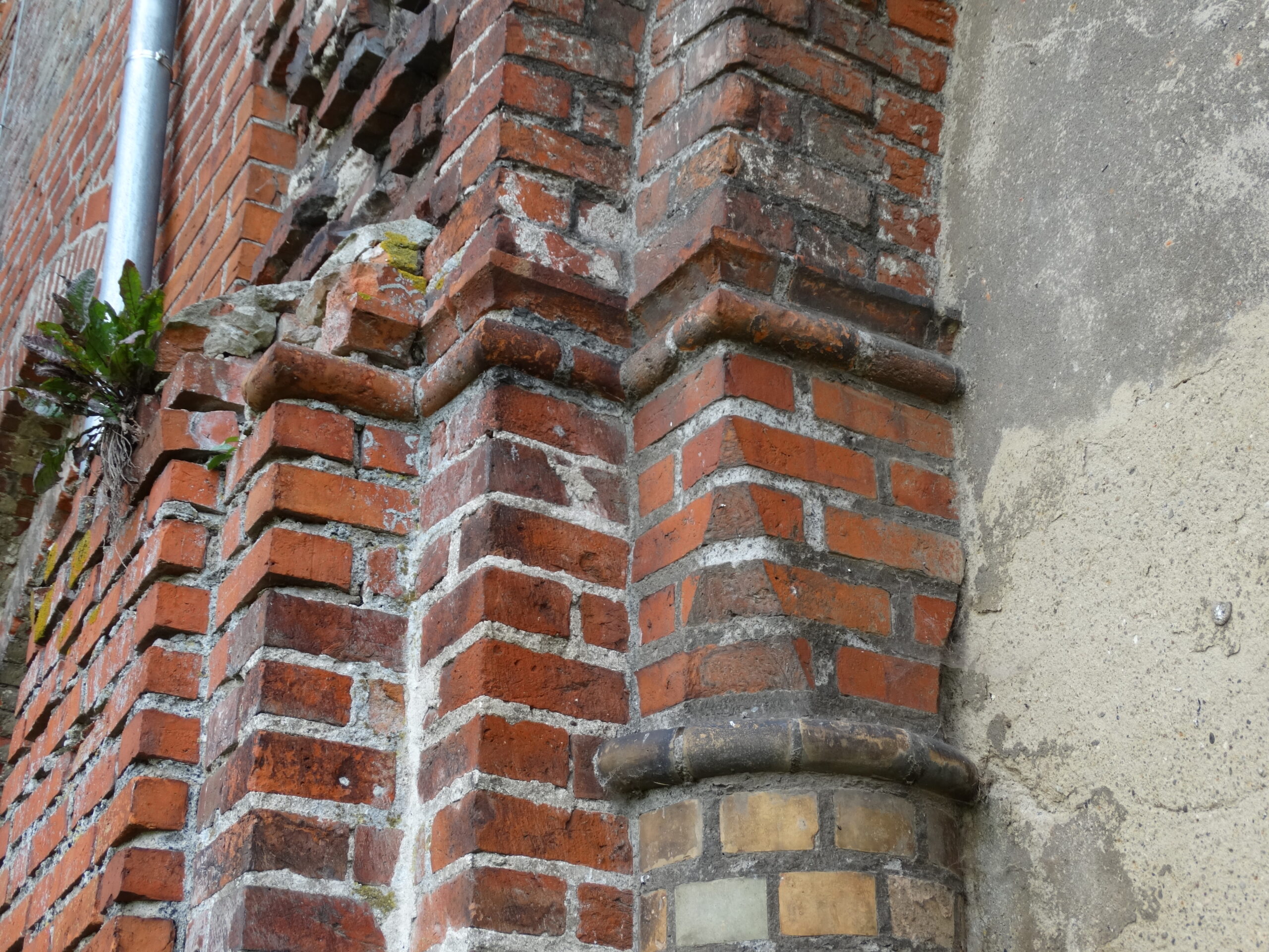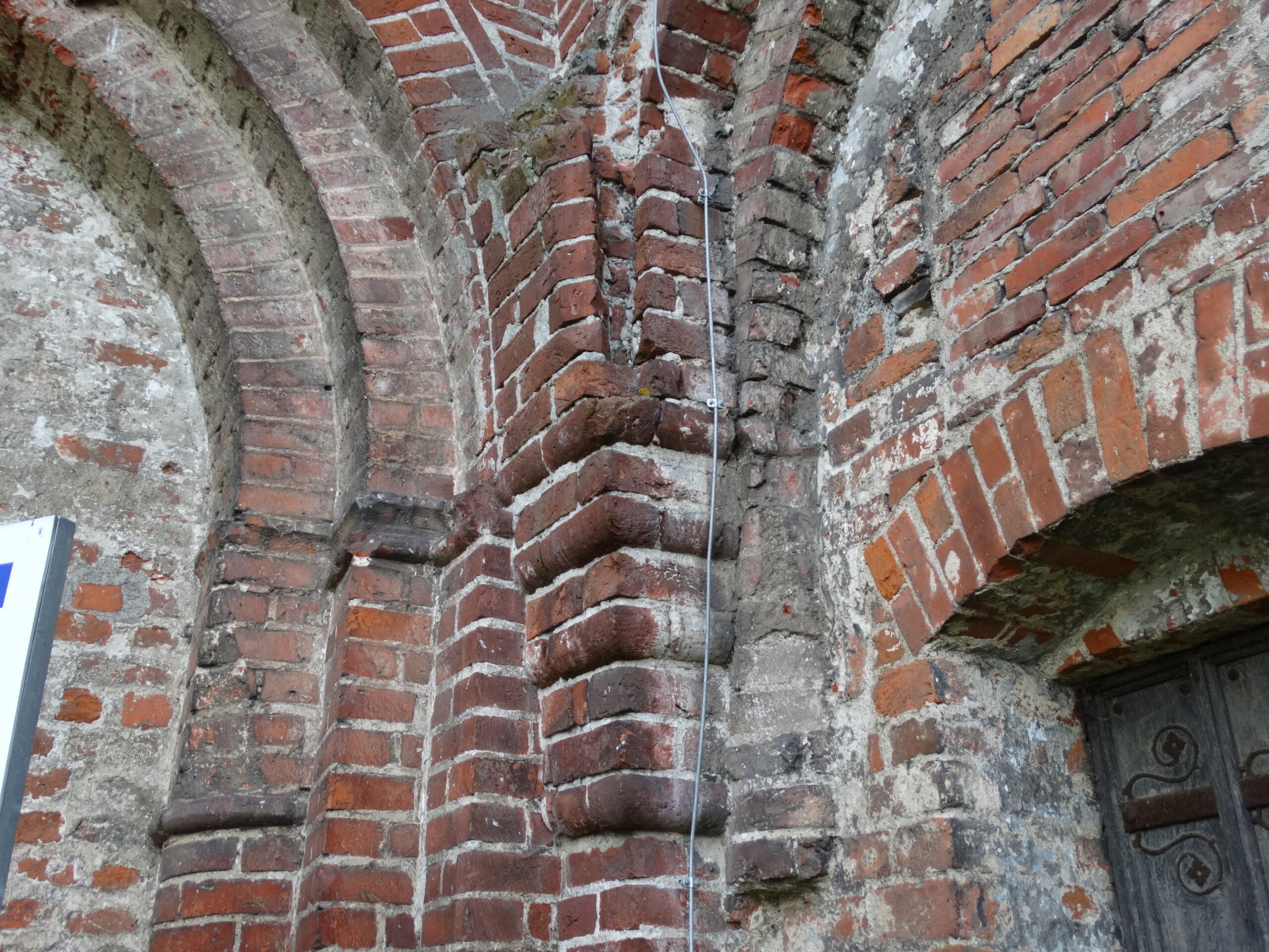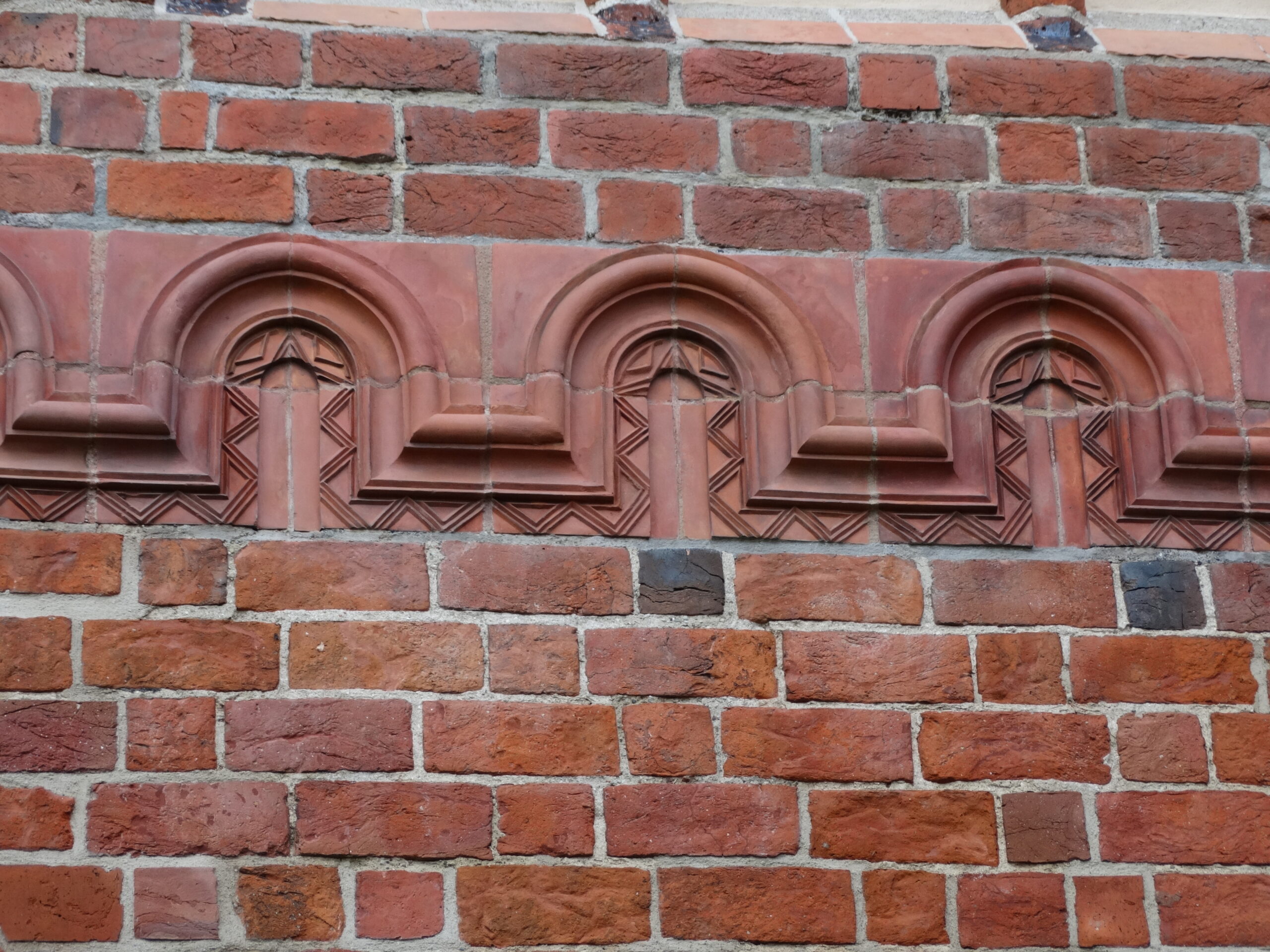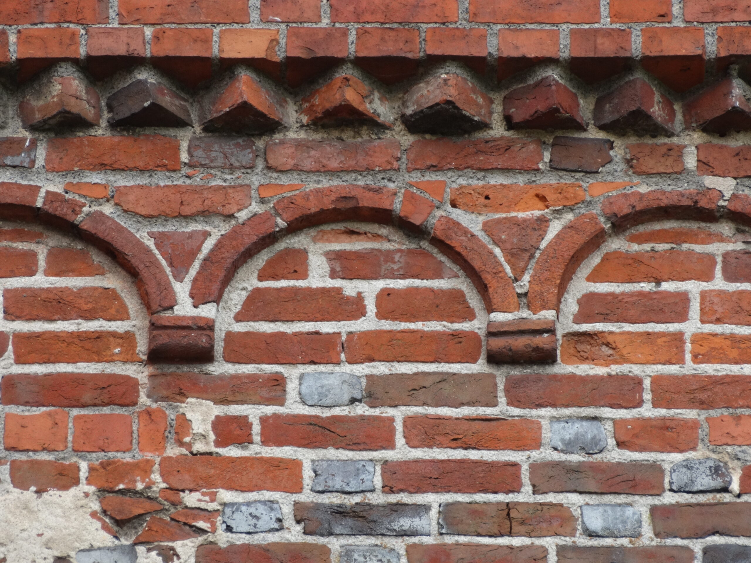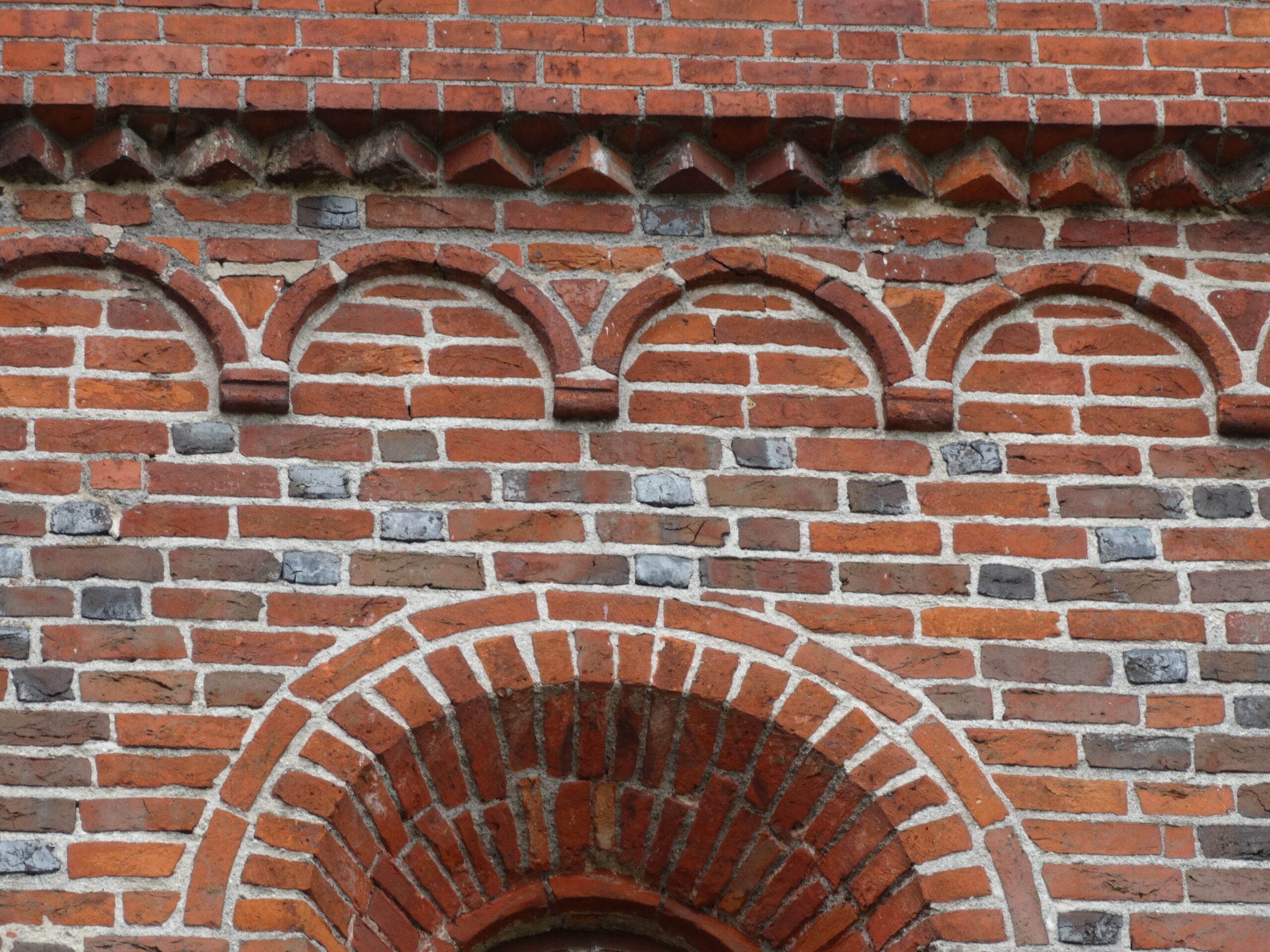 - fryz arkadkowy na konsolkach, a powyżej fryz z ukośnie ułożonych cegieł (ten nie wiem na ile oryginalny?)