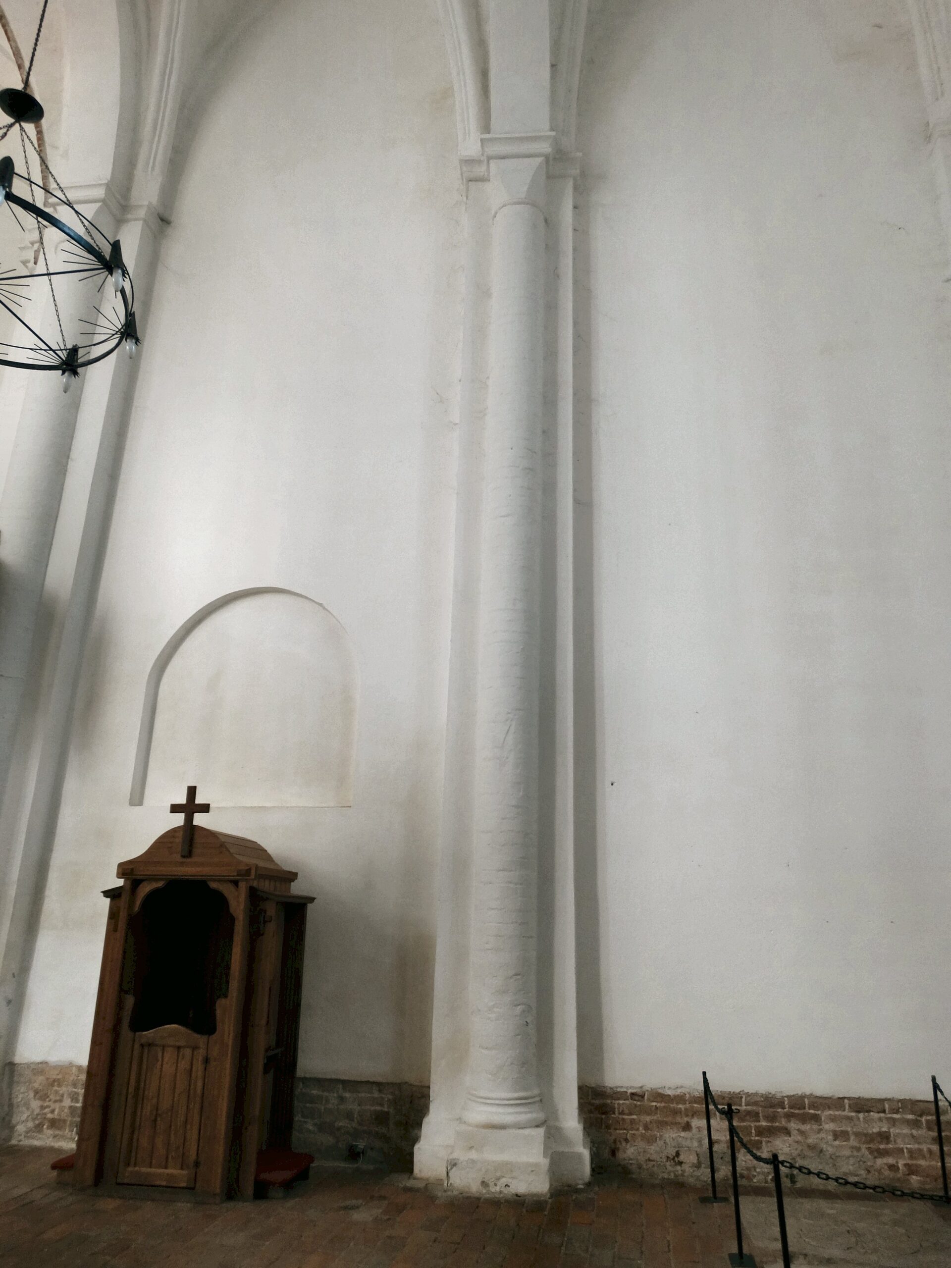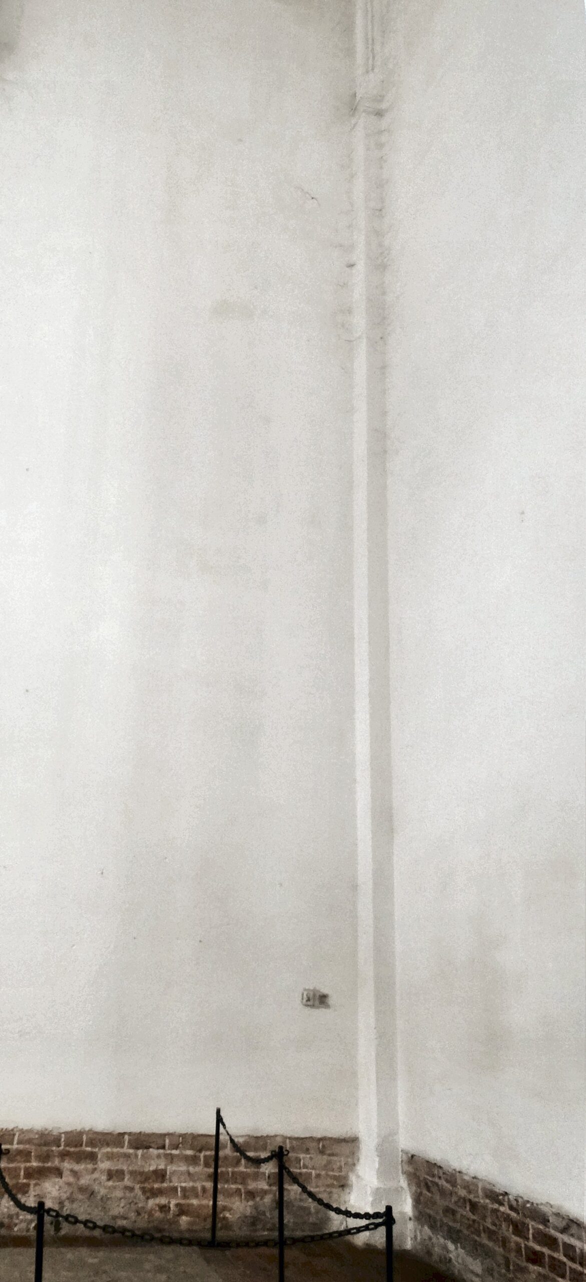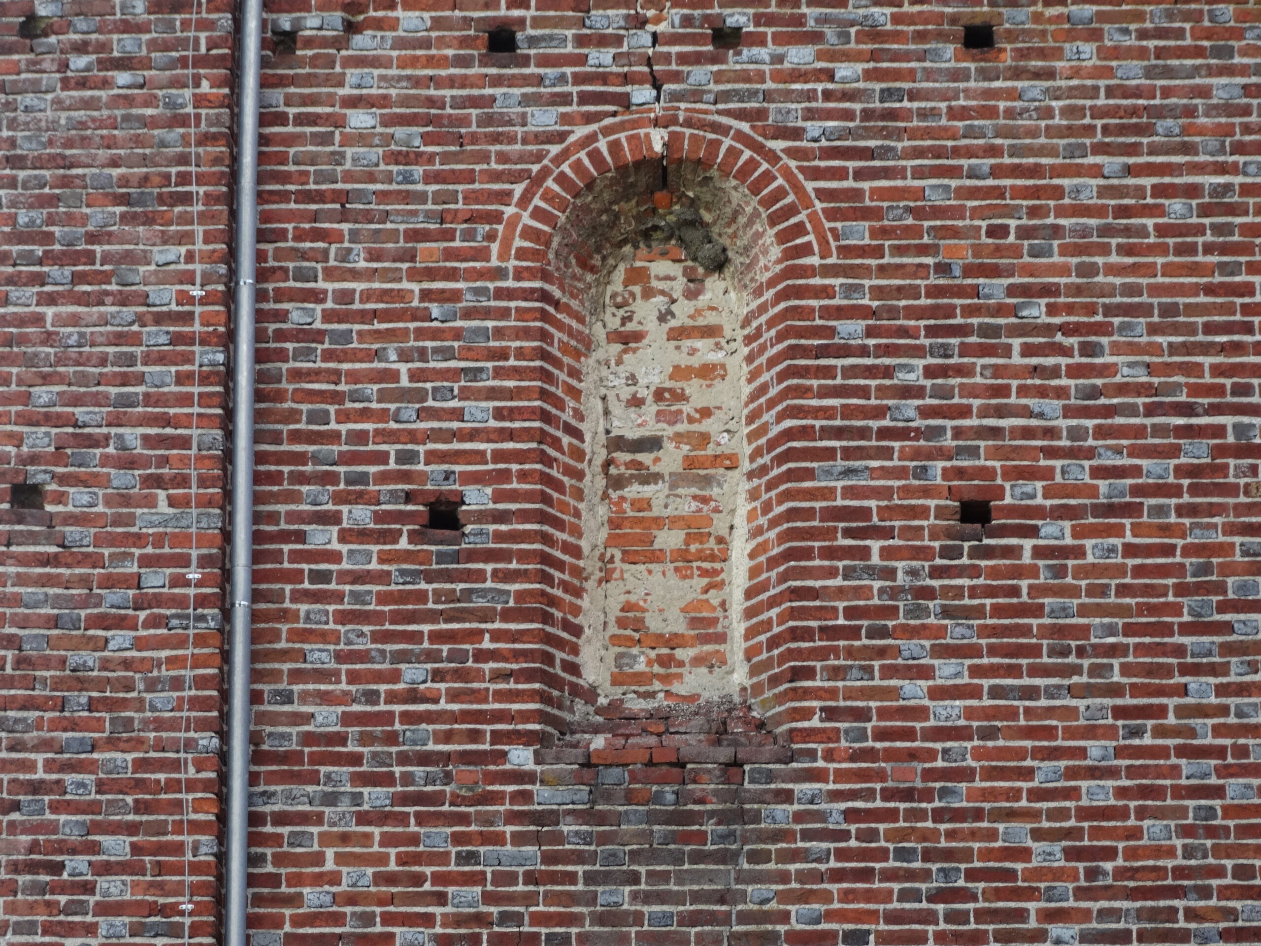 Zachodnia ściana północnego ramienia od środka - bez widocznych śladów zamurowanych okien