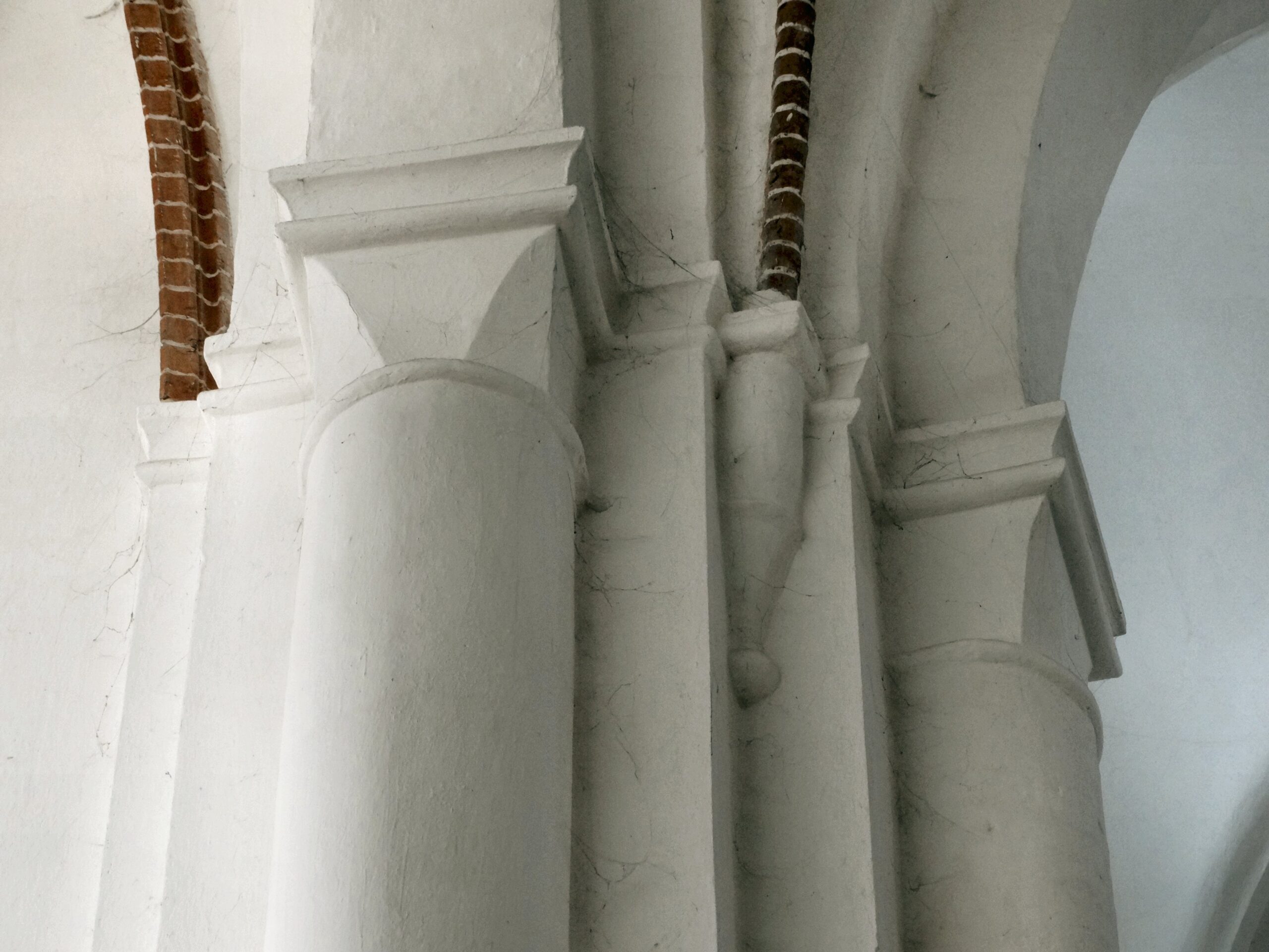 Południowa (prawa) półkolumna arkady nawy bocznej z głowicą trapezowatą