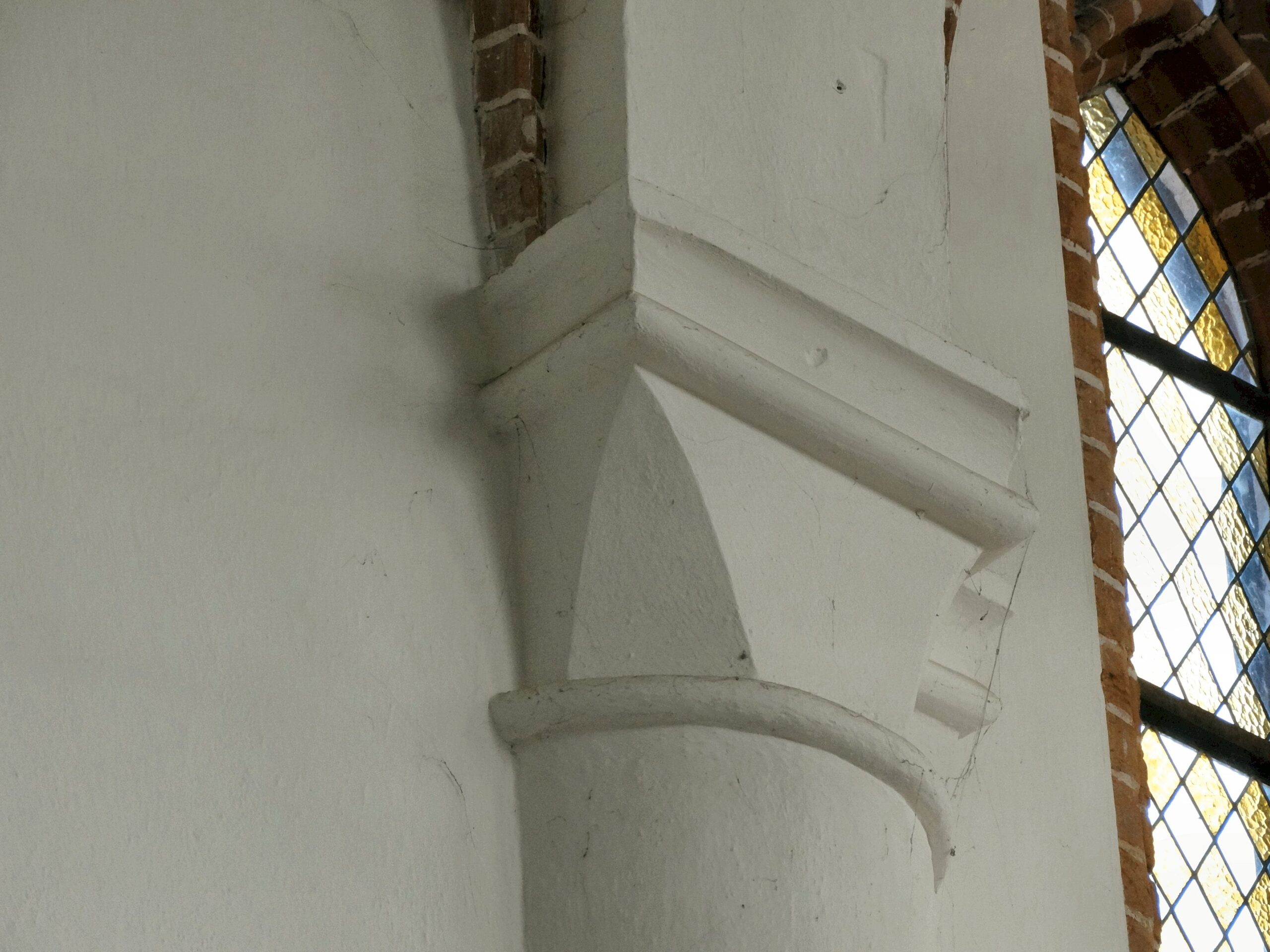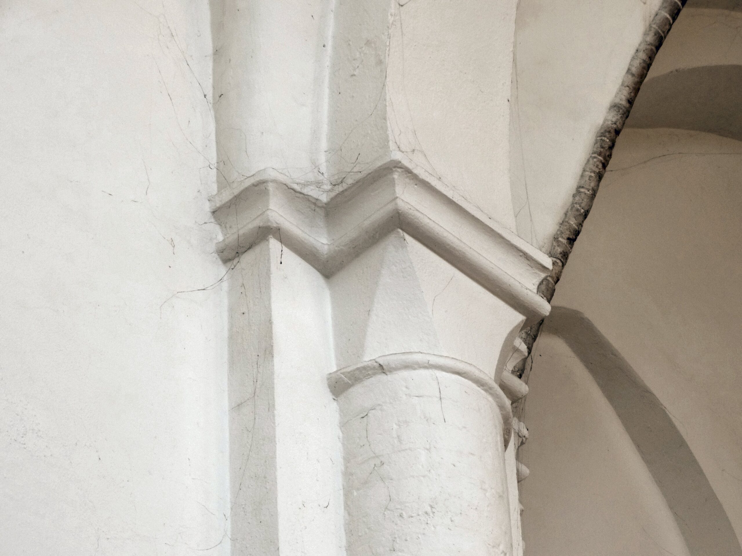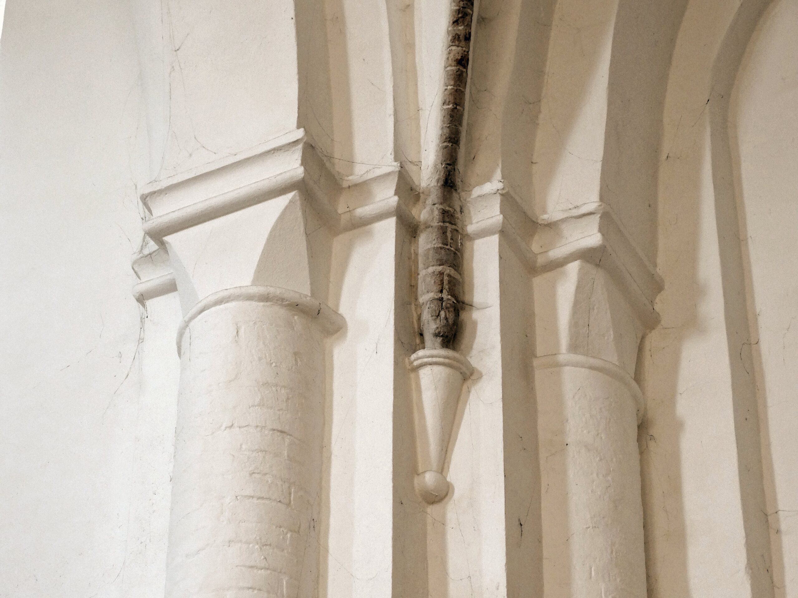 Północna (lewa) półkolumna arkady nawy bocznej z głowicą trapezowatą