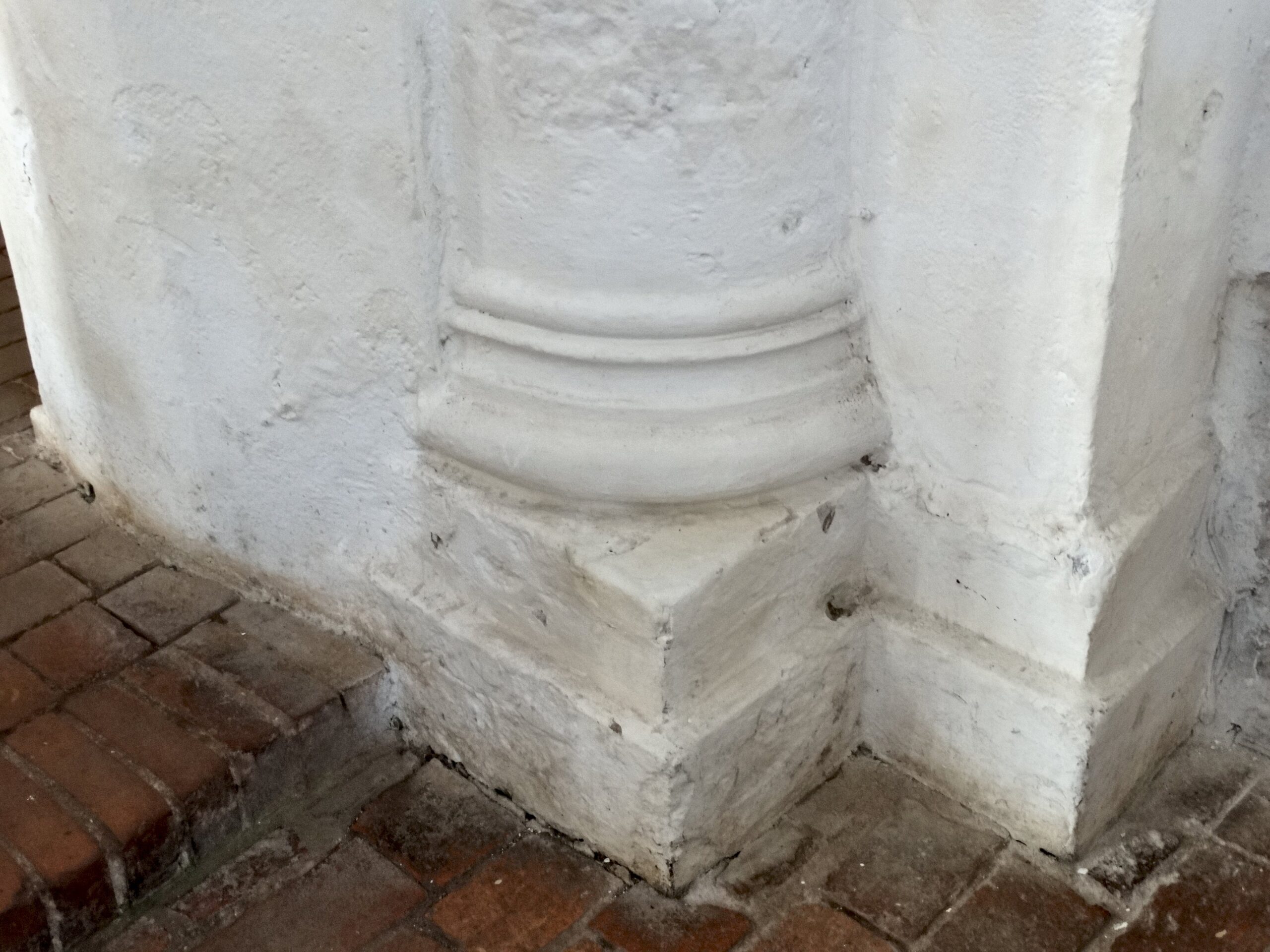 Jw., półkolumna wschodnia (lewa), jej głowica trapezowata i baza