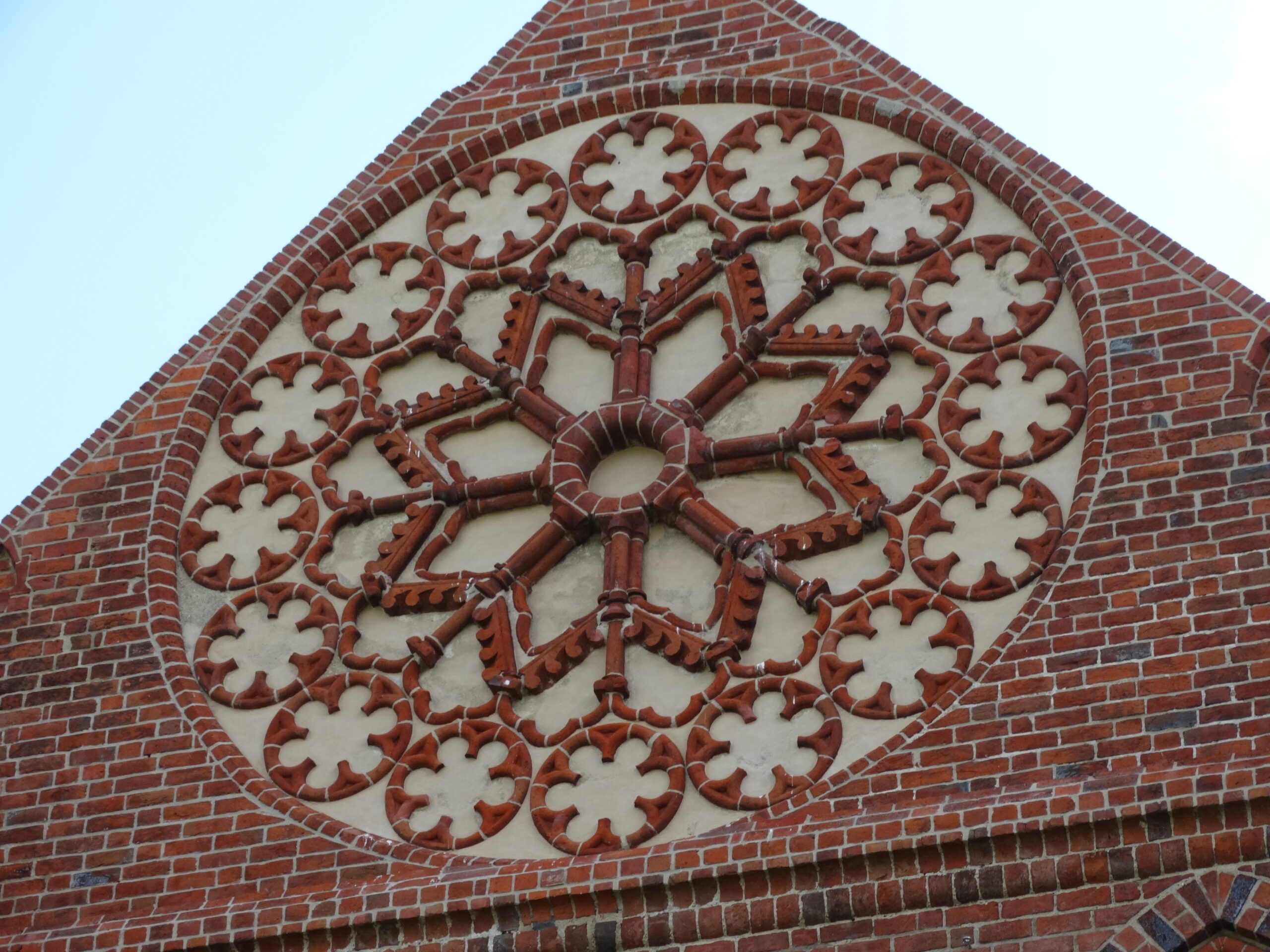 Dodatkowo zdjęcie ceramicznego fryzu arkadkowego na gotyckiej fasadzie zachodniej - zrekonstruowanego w 1863 r. Nie dość, że gotycki, to jeszcze rekonstruowany, ale stylistycznie nawiązuje do fryzów romańskich