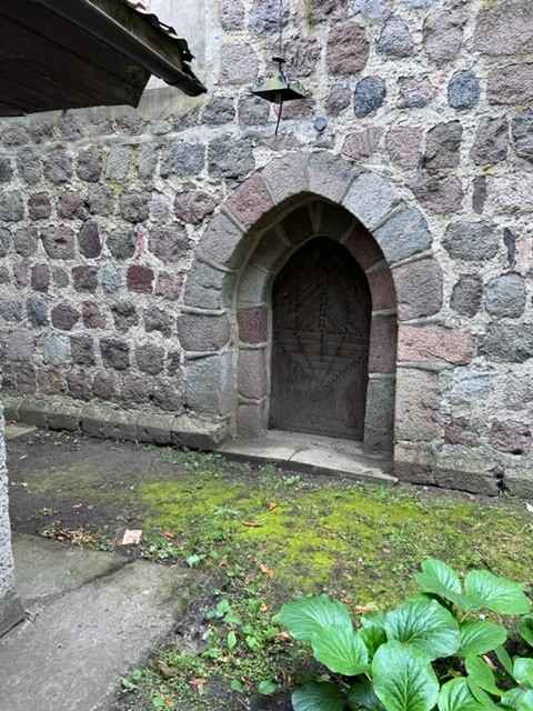 Kościół pod wezwanie Maksymiliana Marii Kolbego z II połowy XIII z ciosów granitowych, bezwieżowy, duże kamienne prezbiterium, portale ostrołukowe i ceglany szczyt zdobiony odbudowanymi w 1983 blendami. Kościół został zniszczony w 1945; odbudowany z ruiny w 1980. Dokoła kościoła zabytkowy mur cmentarny z dwiema bramkami