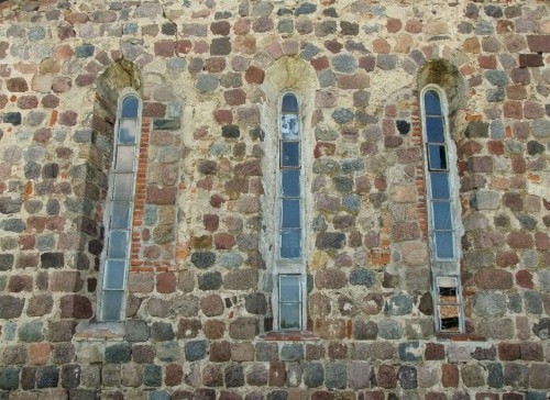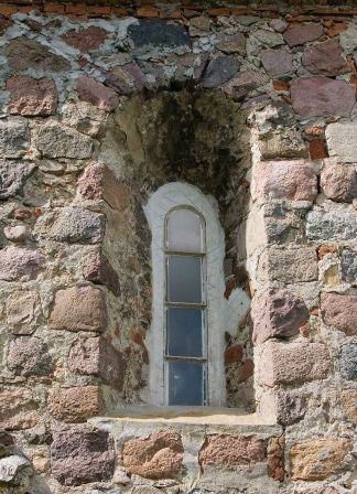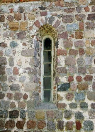 W elewacji wschodniej znajdują się trzy romańskie okna tej samej wysokości, a w szczycie zamurowany obecnie okulus z klińców granitowych. Nadto w elewacjach południowej i północnej liczne pierwotne otwory okienne, niektóre zamurowane.
