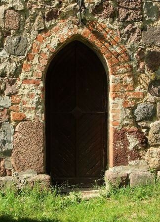 W kościele zachowały się 4 ostrołukowe portale. Główne wejście znajduje się w masywie wieżowym. W ścianie północnej są 2 portale, jeden z nich jest zamurowany, a drugi przekształcony. W ścianie południowej jest jeden portal mocno przekształcony.